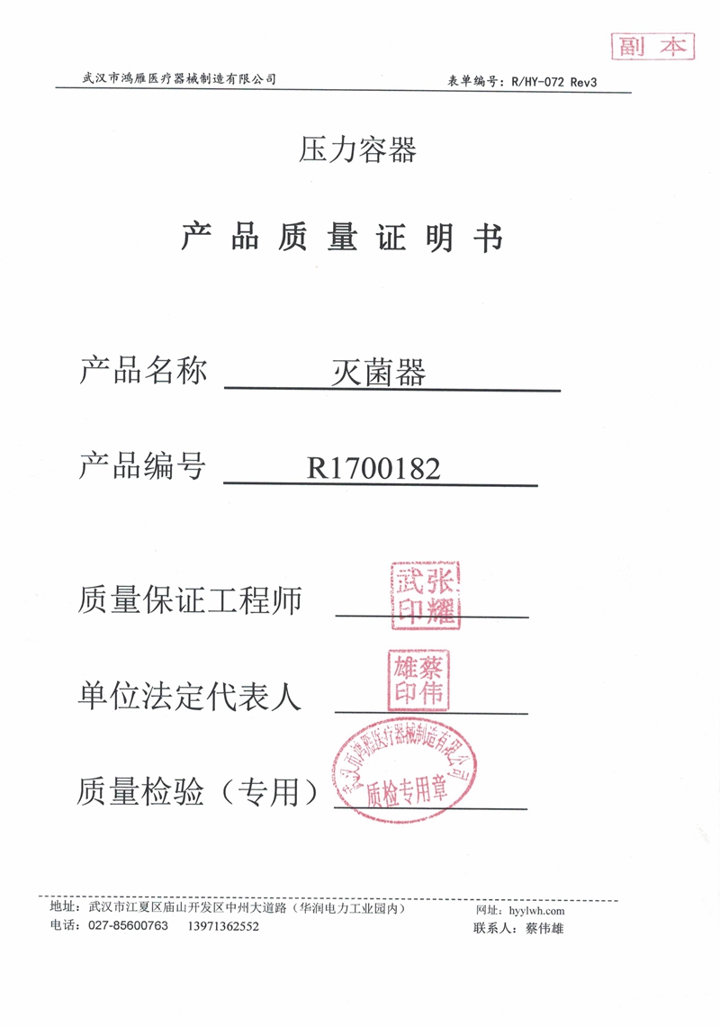 武漢市鴻雁醫療器械制造有限公司主要從事醫療器械、各規格壓力蒸氣滅菌器以及食品、環保等設備的制造。公司產品受鍋爐壓力容器檢驗研究院和食品藥品監督管理局雙重監檢,每臺設備均有自己的身份銘牌。公司始終不渝地堅持科技興企、科學管理的方針,重視科技進步為企業帶來的機會和效益,努力將新技術成果轉化為產業優勢,秉持以品質穩定、產品革新、客戶滿意為公司宗旨。與客戶共創雙贏的局面,分享各項成果,回饋社會。